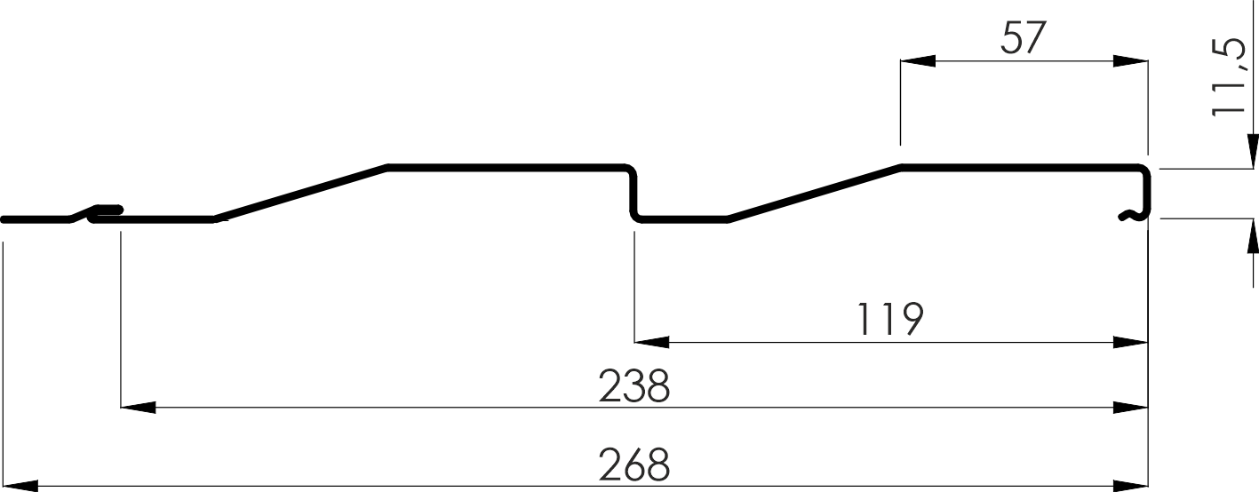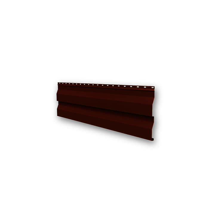 Сайдинг металлический Корабельная доска 268 (238) (0,45/8017 шоколад) имеет одну из старейших форм профиля, которая появилась в числе первых образцов материала. Внешне имитирует набор из досок со скошенной кромкой (как при укладке досок при строительстве деревянного судна), способствующий стоку воды.