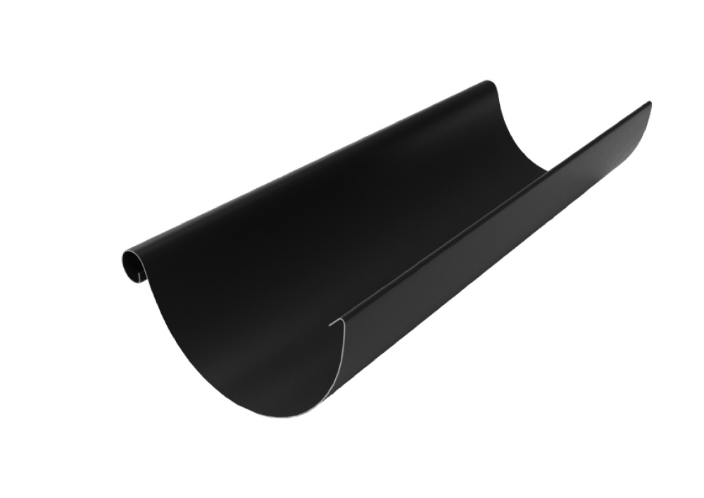 Желоб полукруглый металл OSNO (RAL 7024 графитовый серый) L=3000мм 125*90мм (220шт/поддон) - элемент водосточной системы, который применяется для сбора осадков с кровли и отвода в водосточную трубу. Преимущества: двустороннее полимерное покрытие, оптимальная глубина.